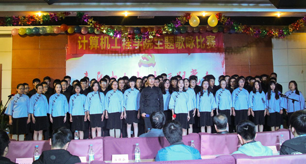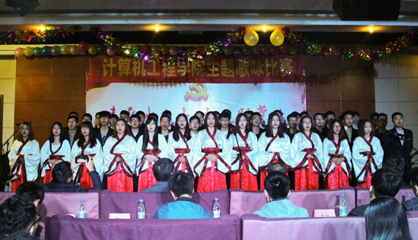10月31日晚,由竞博官网团委主办,计算机工程学院分团委承办的“喜庆十九大、永远跟党走”主旋律歌咏比赛在大学生活动中心多功能厅举行。学院院长宗平、党委书记戴兆骏、常务副院长周西峰、团委书记解厚荣、团委副书记姚远及各二级学院分团委书记、辅导员、各团支部及社团学生代表等出席并观摩了比赛。