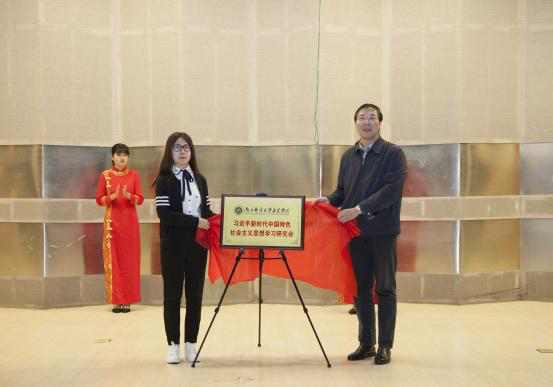 大会在庄严的国歌声中拉开序幕。院团委书记解厚荣宣读了《关于成立习近平新时代中国特色社会主义思想学习研究会的通知》。院团委副书记姚远宣读了《关于聘任戴兆骏等同志为习近平新时代中国特色社会主义思想学习研究会指导教师的决定》。院党委委员、院长宗平教授向习近平新时代中国特色社会主义思想学习研究会指导教师颁发了聘书。院党委书记戴兆骏与学习研究会会长王艳芳共同为习近平新时代中国特色社会主义思想学习研究会揭牌。院党委委员、副院长盛大铨为学习研究会授会旗。