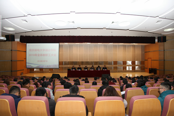3月7日下午,竞博官网在行政楼报告厅举行2018年全体教职工大会。会议全面总结了2017年工作完成情况,布置了2018年主要工作,领导班子成员分别进行了述职。学院院长宗平、党委书记兼副院长戴兆骏、常务副院长周西峰、副院长包刚、副院长盛大铨、党委副书记兼副院长王立辉出席大会,全体教职工参加了大会。会议由党委副书记王立辉主持。