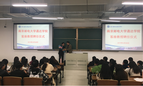 2019年3月28日,竞博官网在教三401教室举行了客座教授聘任仪式,包刚副院长为扬州电信网络运行维护部主任刘强强先生颁发了客座教授聘书。