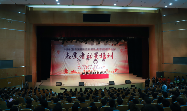 4月13日下午,2019年扬州鉴真国际半程马拉松赛志愿者动员培训会在竞博官网大学生活动中心大礼堂召开。扬州市团市委副书记李伟、扬州市体育竞赛管理中心副主任宋捷、扬州市公安局治安支队治安防范大队教导员宋金春、扬州市卫健委应急办主任陈长、扬州中瑞酒店职业学院团委书记周洁、竞博官网团委副书记姚远以及来自竞博官网、扬州工业职业技术学院、江海学院的800多名学生志愿者参加了本次培训会。会议由扬州市团市委李璀芳主持。