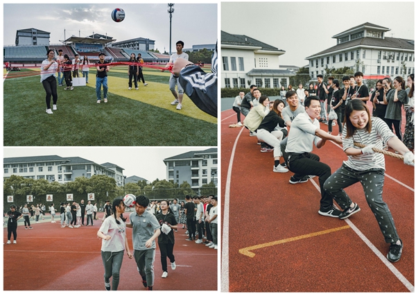 仪式结束后,社团联合会组织各兴趣社团与二级学院开展了趣味体育竞赛,活动现场气氛活跃。最后电子工程学院获得了“二龙戏珠”与“拔河”项目的冠军,计算机工程学院获得了“鼓动人心”项目的冠军。竞博官网教师也积极参与其中,与同学们共同践行“三走”精神。