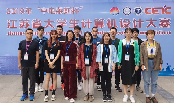 中电莱斯杯 2019 年江苏省大学生计算机设计大赛暨 2019 年(第 12 届)中国大学生计算机设计大赛江苏省级赛决赛于5月17-19日在中国矿业大学南湖校区举行。我校共有5件作品进入决赛,经过激烈角逐全部获得奖项,其中一等奖1项,三等奖3项,优胜奖1项,王斌老师获得优秀管理员奖。获得一等奖、三等奖的4件作品将于7-8月参加中国大学生计算机设计大赛国赛。