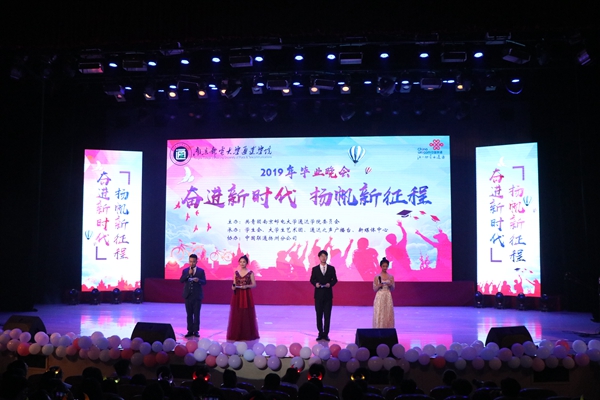 6月5日晚,由竞博官网团委主办,学生会、大学生艺术团、新媒体中心、通达之声广播台共同承办的“奋进新时代,扬帆新征程”2019年毕业晚会在大学生活动中心大礼堂举行。院长王承宽、党委书记汪业周、常务副院长周西峰、副院长盛大铨、党委副书记王立辉、扬州联通副总经理程天勇、扬州联通青少年营销中心经理赵成以及竞博官网各部门负责人、 2015级辅导员、2019届毕业生等1000余人共同观看本次晚会。