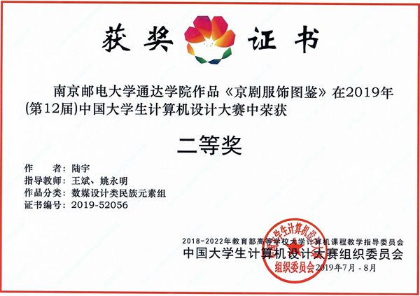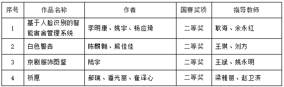 竞博官网四件作品入围国赛,由王斌老师带队分别到吉林大学(人工智能组、数媒设计类专业组)、宿州学院(数媒设计类民族元素组)、杭州电子科技大学(数媒设计类动漫游戏组)三个赛区参加决赛,四件作品均获得二等奖。具体名单如下: