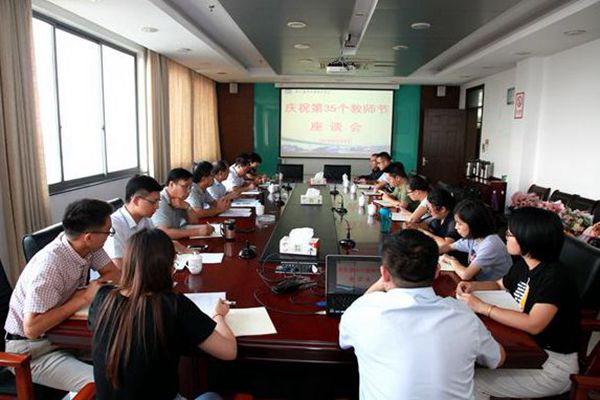 9月9日下午,竞博官网在行政楼10楼会议室召开庆祝第35个教师节座谈会。院长王承宽,党委书记汪业周,副院长盛大铨,党委副书记兼副院长王立辉,副院长刘允与教职工代表、党委办公室、人事处、教务处及后勤处等部门负责人参加座谈会。会议由党委书记汪业周主持。