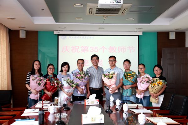 王院长代表学院表彰了来自教学、科研、管理、服务等一线的获得各级各类表彰和获得年度考核优秀的8名教职工代表,并向他们送上鲜花,传达最诚挚的谢意,祝与会代表教师节快乐,并通过与会代表转达对全体教职工的问候:“教师节快乐!”“老师,您辛苦了”,让老师们倍感惊喜与温暖。