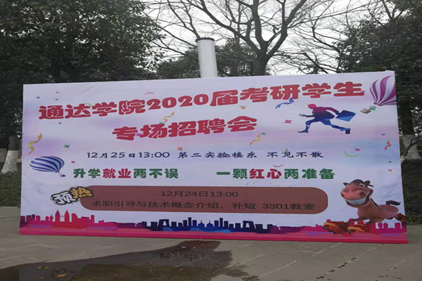 2020年全国硕士研究生招生统考刚刚结束,学院招生就业处老师们以“考研专场校招双选会”系列活动为在校的2016级近千名考研学子送来了自己的礼物。