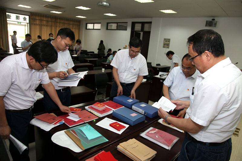 党支部书记述职之后,会议组织测评。党委委员(院考评小组成员)和党支部书记共40人,查看了各党支部的党建材料,依据“院党支部标准化建设检查指标计分细则”,对党支部工作分别作出考核评分。