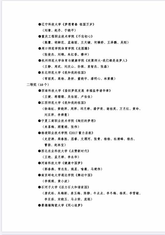 2021年1月2日,中国大学生体育协会公布了2020年中国大学生健康活力“云”系列大赛竞赛成绩,竞博官网《舞动中国》团体操获得自编组单场操二等奖,是我省唯一一所获此殊荣的本科院校。