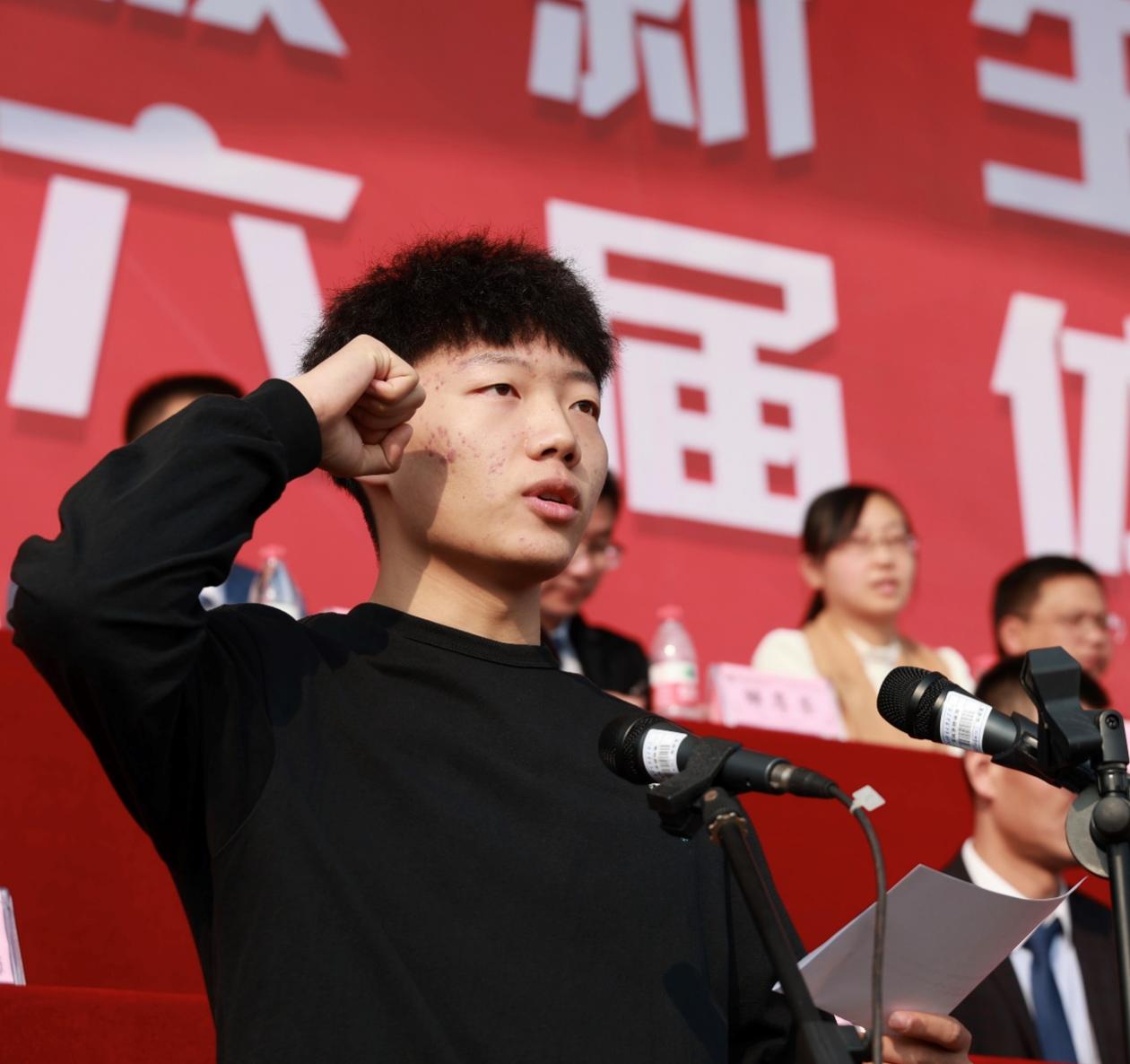 教师代表朱书眉老师、学生代表郝荣同学和2021级新生代表赵佳轩同学在典礼上分别作了发言。