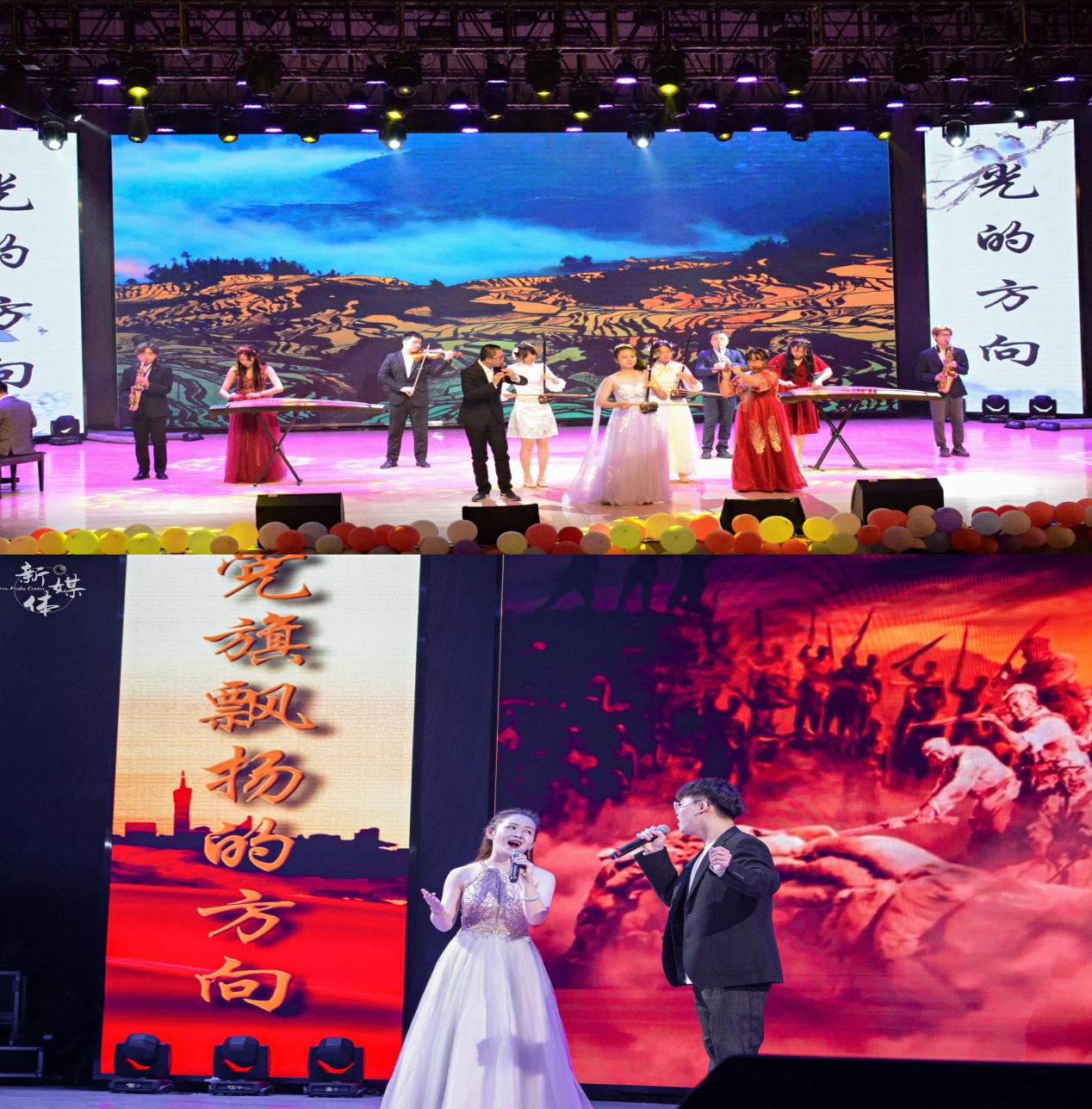 表演环节在大艺团舞团、街舞社和起灵舞蹈社共同带来的舞蹈《画卷》中开启。新媒体和青协带来的视频《疫去秋来,你好通达》,辅导员靳薇弘老师和大艺团器乐团的表演《光的方向》点燃了我们心中的热血,激励全院学生不忘初心,牢记使命,锤炼品质,砥砺奋斗。辅导员汤哲妍老师和薛际洲同学演唱的歌曲《党旗飘扬的方向》将中国共产党波澜壮阔的百年历史呈现在观众眼前;古典舞《万疆》轻盈优美,表达了竞博官网学生对祖国大好河山的赞美与热爱,新媒体的视频《四年》和朗诵《青春寄语》告诉大家,信仰对一个青年人是多么重要;晚会在歌曲《你好未来》与2021级新生辅导员的寄语声中落下了帷幕。