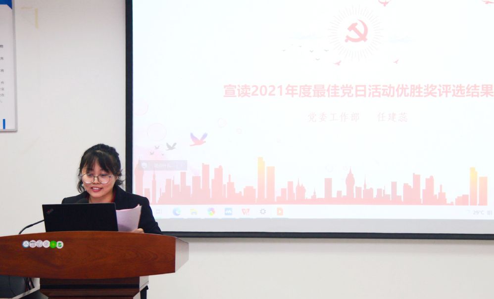 会上,院党委工作部任建蕊宣读了《关于公布2021年度最佳党日活动优胜奖评选结果的通知》,并对获奖支部表示祝贺。商学院学生第三党支部书记岑慧、学工党支部书记解厚荣、商学院教师党支部书记闫志龙依次给大家带来创最佳党日活动的经验分享。