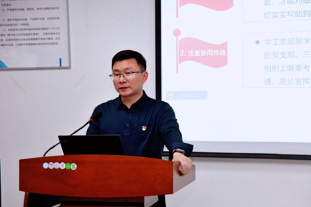 2022年5月18日下午,学院党委党校在图书馆四楼声像放映室召开“提升党日活动质效”专题培训会,培训会由党委工作部副部长任建蕊主持,学院全体党总支负责人、党支部书记、支部委员参加此次培训会。