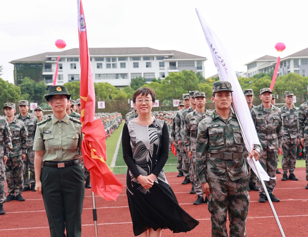 党委书记朱清代表学院向“通达戎光先锋队”和“军训团”授旗。不同于以往的是,接受本次承训任务的“通达戎光先锋队”,44名教官全部是竞博官网退役复学的学生,他们经过军营历练,拥有过硬的政治素养和军事能力。通过他们的承训,不仅能更加提升自身综合素养,对其他新生而言,更能起到朋辈榜样的作用。