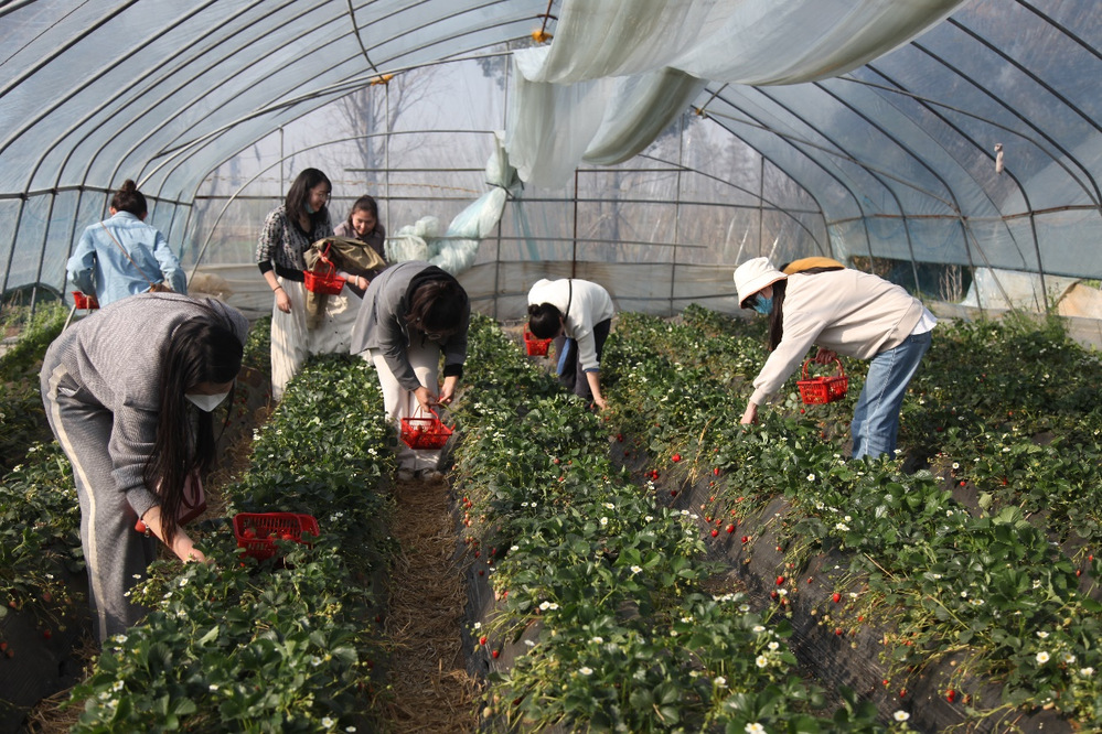 接着老师们分批前往草莓园采摘草莓,草莓园一片生机勃勃,翠绿的叶子、鲜红欲滴的果实、芬芳的果香都让人感受到春天的气息。大家拿着小筐,小心翼翼地穿梭在草莓田间,感受着亲手采摘的乐趣,每个人的脸上都洋溢着灿烂的笑容。大家时而驻足合影、时而谈笑风生,在欢声笑语中沐浴着阳光,体验着采摘的乐趣。