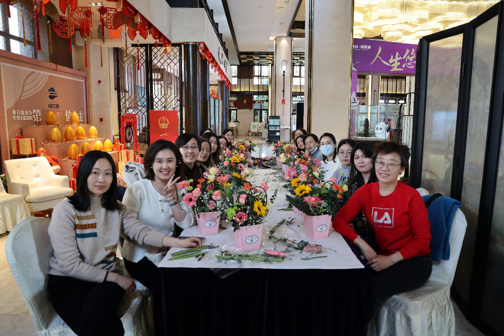 部分老师留在玥珑湖邻里中心进行插花手作,指导老师详细介绍了插花的基本结构、造型技法以及养护知识。活动现场为老师们准备了各种各样的花,女教工们根据花艺师的示范步骤,自由选取自己喜欢的花,充分展示自己的聪明才智,发挥对美的想象和创造,将自己的激情与花的热爱融入到插花创作中,最终一篮篮各具特色的鲜花插花作品展示在大家面前。
