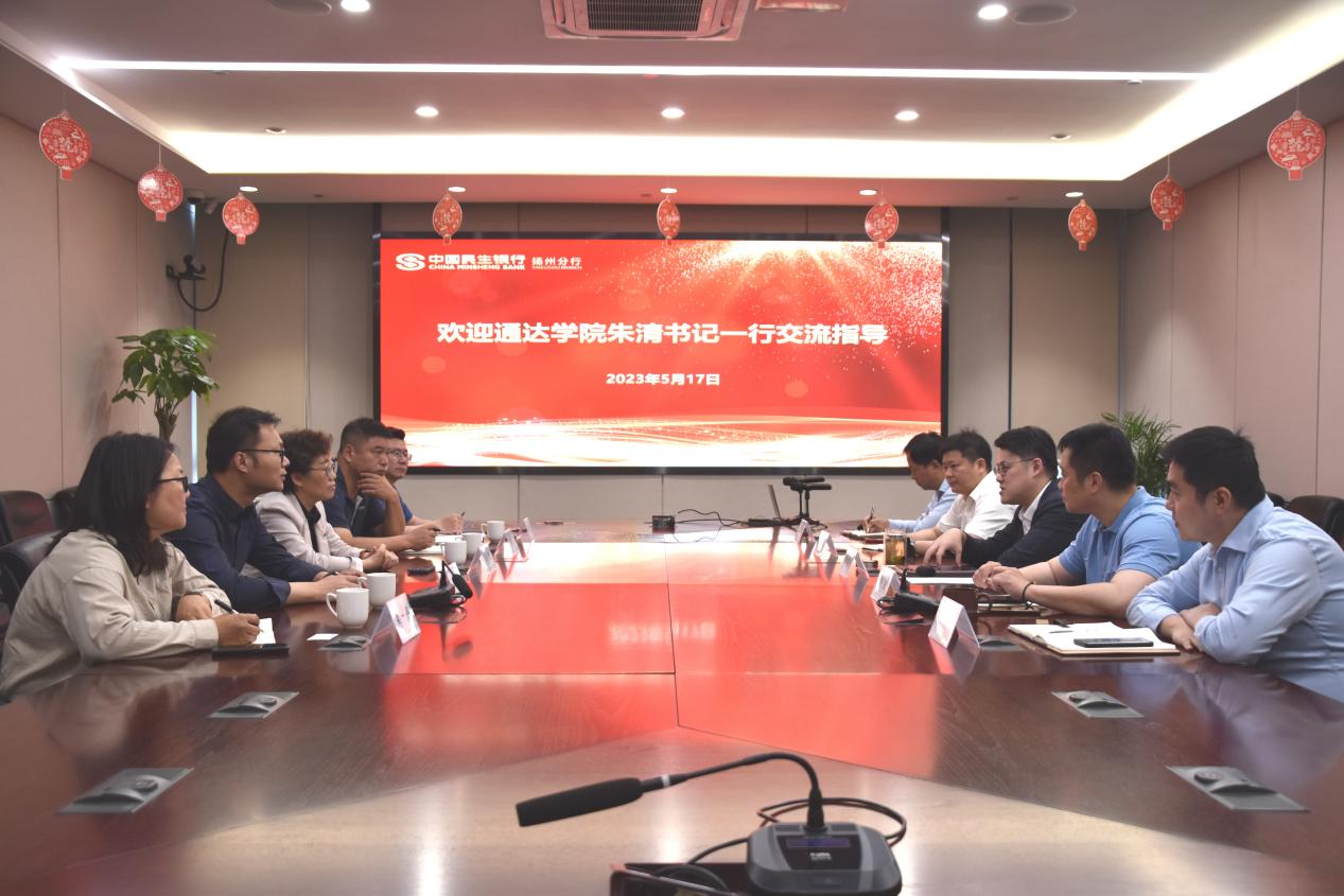 5月17日,竞博官网党委书记朱清率队赴民生银行扬州分行走访调研。民生银行扬州分行党委书记、行长杜杨坤,党委副书记倪敬等,竞博官网副院长倪可,党委副书记、副院长王楷,招生就业处、商学院等相关部门负责人参与调研。