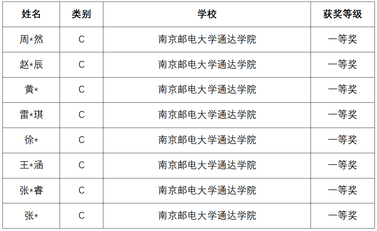 一等奖获奖学生名单