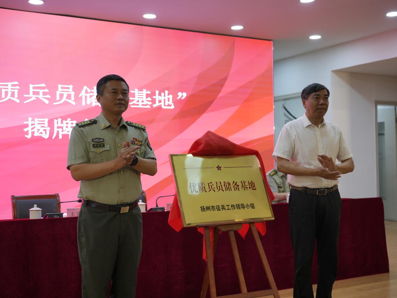揭牌仪式在嘹亮的国歌声中开始。储晓来宣读了扬州市征兵工作领导小组《关于确立“优质兵员储备基地”的通知》,确立竞博官网为“优质兵员储备基地”。仇志军和王国平共同为“优质兵员储备基地”揭牌。