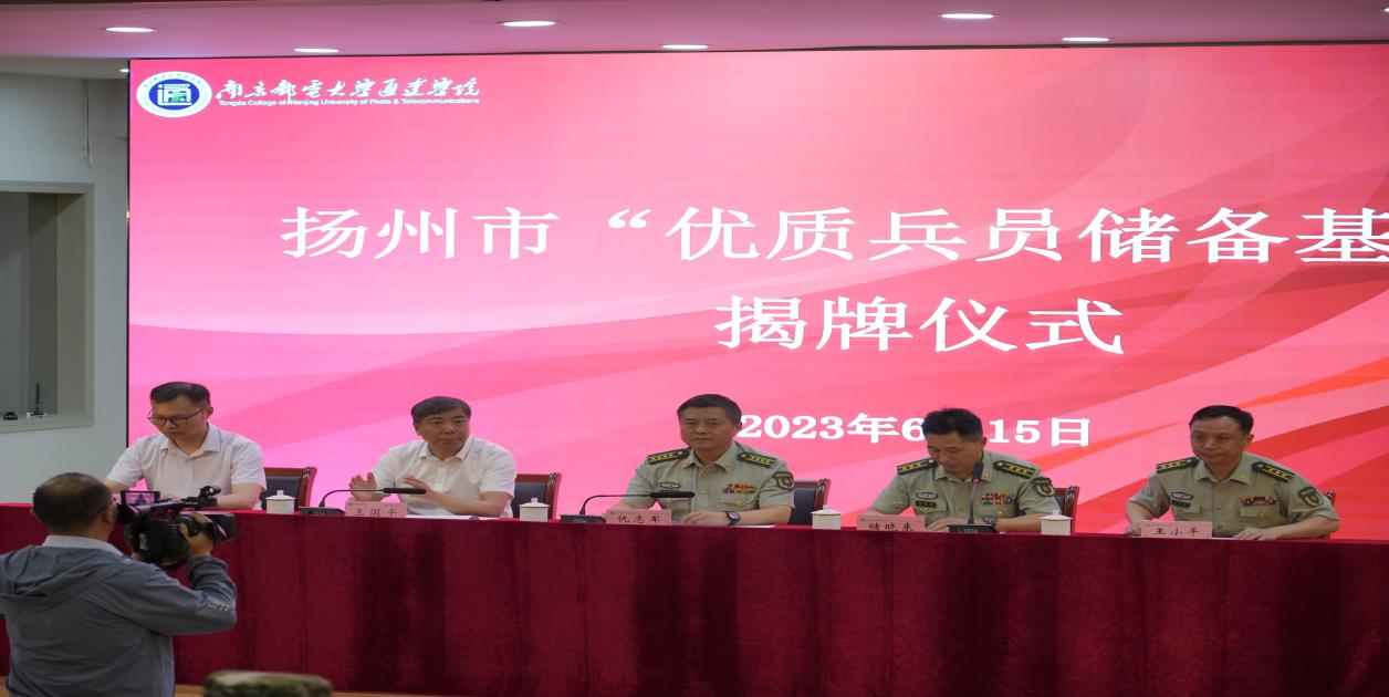 6月15日上午,竞博官网在实验楼报告厅举行扬州市“优质兵员储备基地”揭牌仪式。扬州军分区大校副司令员仇志军,市征兵办主任、扬州军分区动员处处长储晓来,江都区人武部部长王小平,竞博官网院长王国平、党委副书记兼副院长王楷出席了仪式,竞博官网学生工作(部)处、人武部,各二级学院党总支负责人,20级辅导员,退伍复学学生代表,有意愿参军入伍的学生代表共计300余人参加了仪式。仪式由储晓来主持。