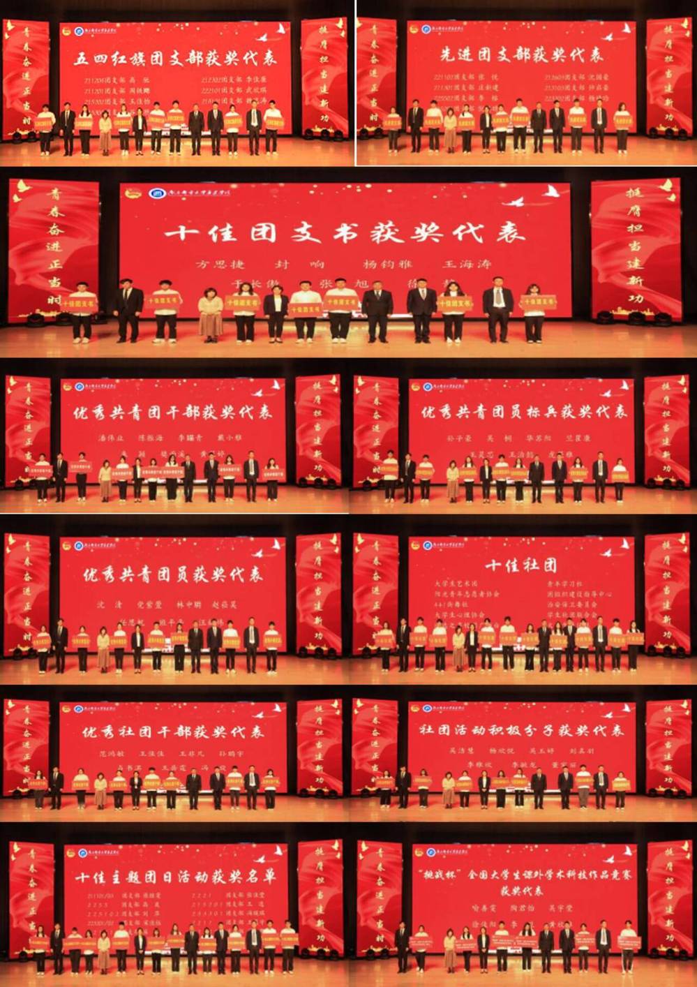 在五四表彰环节中,党委副书记兼副院长刘伟宣读了《关于表彰jbo竞博官网登录2023-2024学年先进团组织和个人的决定》和《关于表彰jbo竞博官网登录2023-2024学年十佳主题团日活动的决定》。商学院分团委和电子工程学院分团委荣获“五四红旗团委”荣誉称号,计算机工程学院分团委书记靳薇弘、电气工程学院分团委书记刘阳荣获“优秀共青团工作者”荣誉称号。在“挑战杯”全国大学生课外学术科技作品竞赛和第十届科技文化节系列竞赛中,获得2个省级二等奖以及4个省级三等奖。11个团支部荣获“五四红旗团支部”称号、16个团支部荣获“先进团支部”称号;共评选出优秀共青团干部44名、优秀共青团员标兵22名、优秀共青团员272名、优秀社团干部76名、社团活动积极分子298名、十佳社团10个、十佳团支书10名、十佳主题团日活动10个。